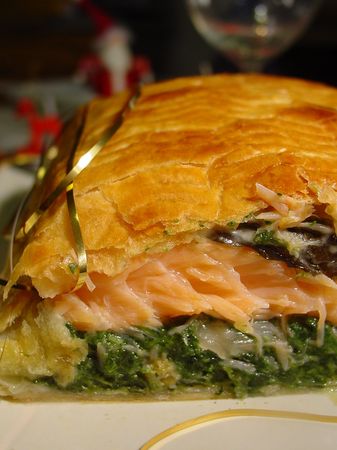 Le jour-j, étaler la pâte feuilletée en deux rectangles un peu plus larges que le filet de saumon.